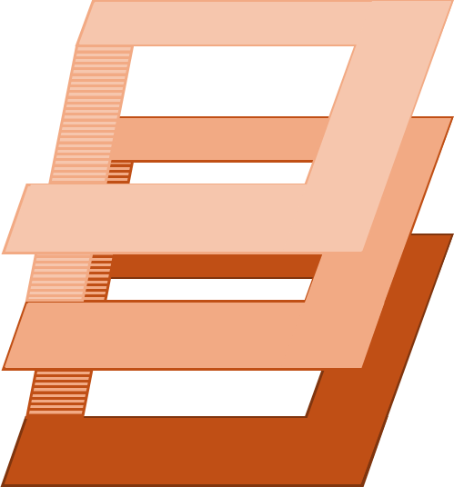 本図に描かれた五百羅漢寺の三匝堂は、コの字型の回廊を右に廻り、階段で上階に登った後、別の階段から降りる構造になっていたと考えられています。おそらく、下図のような構造であったと思います。