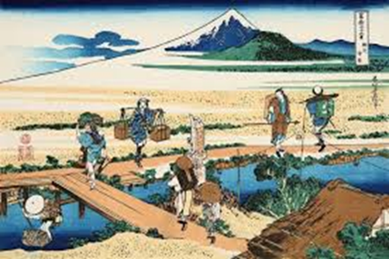 以上のように、本図は、大山詣という庶民信仰の広がりと街道の賑わい、さらに土地に根ざした生活の息遣いを、富士を中心とする雄大な風景の中に巧みに織り込んだ作品であり、風景表現と人物描写に北斎の力量が遺憾なく発揮されています。
